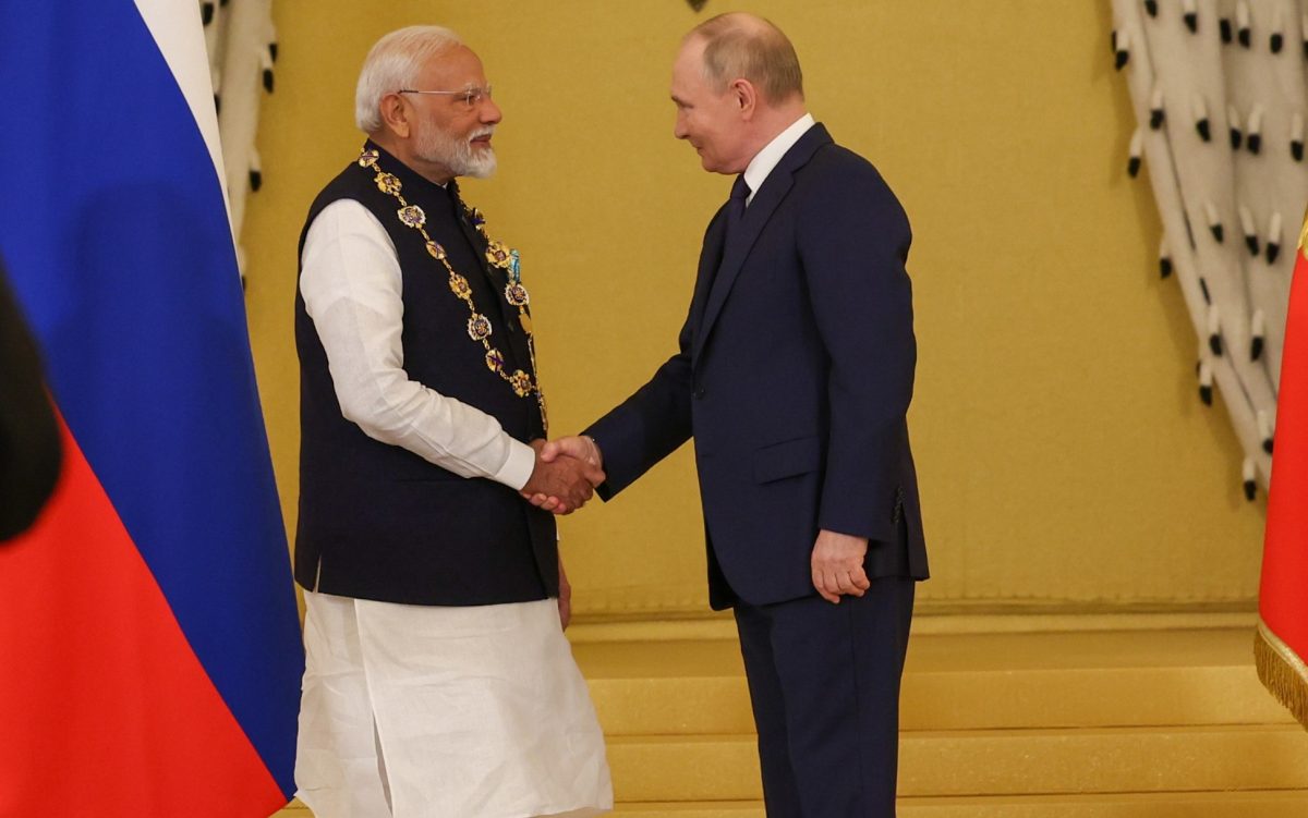 मॉस्को : बुधवार, जुलाई 10, 2024/ रूस के राष्ट्रपति महामहिम व्लादिमीर पुतिन ने भारत-रूस संबंधों को बढ़ावा देने में प्रधानमंत्री नरेन्द्र मोदी के योगदान के लिए क्रेमलिन के सेंट एंड्रयू हॉल में आयोजित एक विशेष समारोह में, उन्हें रूस के सर्वोच्च राष्ट्रीय पुरस्कार “द ऑर्डर ऑफ सेंट एंड्रयू द एपोस्टल” से सम्मानित किया। इस पुरस्कार की घोषणा 2019 में की गई थी।