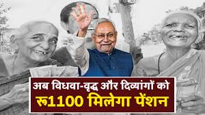 मुख्यमंत्री नीतीश कुमार की सरकार ने सामाजिक सुरक्षा पेंशन योजना के तहत मिलने वाली राशि में भारी बढ़ोतरी की घोषणा की है। अब वृद्ध, दिव्यांग और विधवा महिलाओं को प्रतिमाह 400 रुपए की बजाय 1100 रुपए पेंशन मिलेगी।