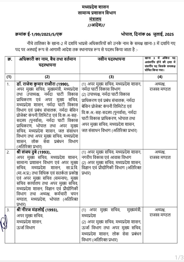 नीरज मंडलोई होगें मुख्यमंत्री के नए एसीएस सामान्य प्रशासन विभाग द्वारा भारतीय प्रशासनिक सेवा के अधिकारियों की नवीन पदस्थापना के आदेश जारी किए|