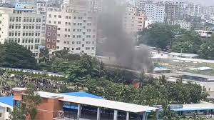 बांग्लादेश वायुसेना का प्रशिक्षण विमान कॉलेज परिसर में गिरा