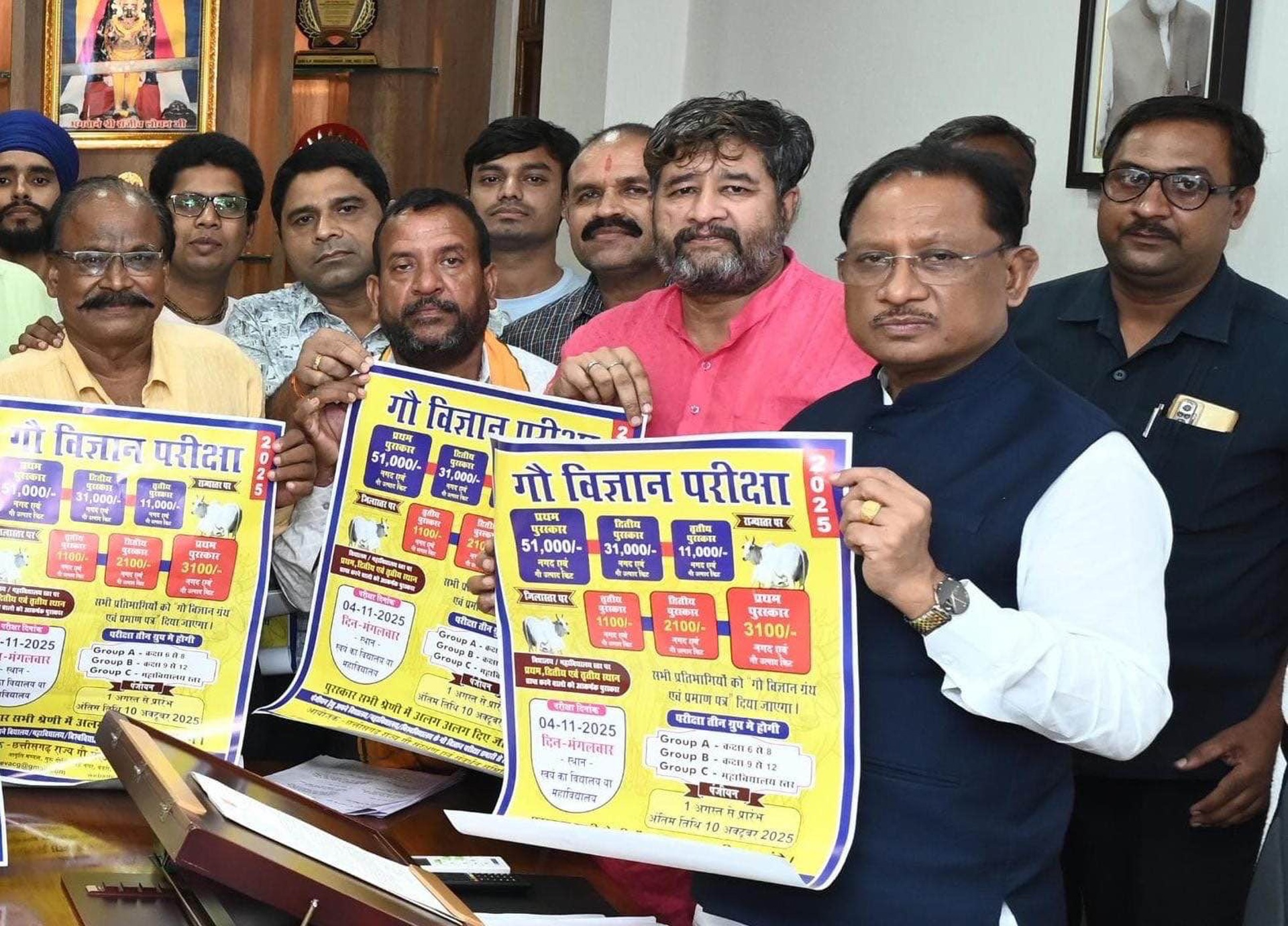 मुख्यमंत्री विष्णु देव साय ने आज अपने निवास कार्यालय में छत्तीसगढ़ राज्य गौ संरक्षण एवं संवर्धन समिति द्वारा आयोजित ‘गौ विज्ञान परीक्षा अभियान 2025’ का शुभारंभ किया। इस अवसर पर उन्होंने अभियान के पोस्टर का अनावरण किया और समिति के सदस्यों को इस पुण्य कार्य के लिए शुभकामनाएँ एवं बधाई दी।
