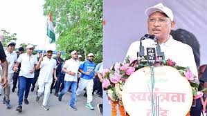 हमारा तिरंगा पूर्वजों के वर्षों के संघर्षों और बलिदान का जीवंत प्रतीक है। हम सभी तिरंगे की शान को हमेशा बनाए रखेंगे, अपने अमर बलिदानियों को कभी नहीं भूलेंगे और सभी मिलकर विकसित, समृद्ध और सशक्त छत्तीसगढ़ का निर्माण करेंगे। मुख्यमंत्री विष्णु देव साय आज राजधानी रायपुर के मरीन ड्राइव में आयोजित स्वतंत्रता दौड़ में शामिल हुए और कार्यक्रम को संबोधित किया। इस दौरान उन्होंने हजारों युवाओं के साथ स्वतंत्रता दौड़ लगाई और भारत माता और अमर बलिदानी रानी दुर्गावती की प्रतिमा पर माल्यार्पण कर उन्हें नमन किया।