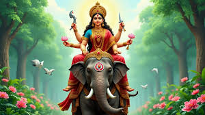 सोमवार या रविवार – हाथी पर आगमन (सुख-समृद्धि और अच्छी बारिश)