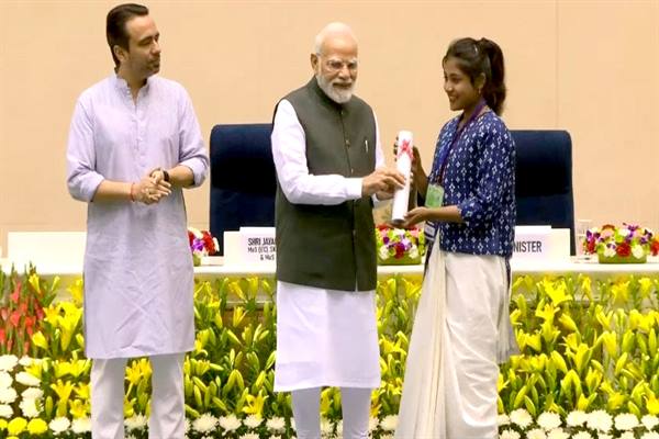 प्रधानमंत्री मोदी ने बैतूल की आईटीआई प्रशिक्षार्थी कु. तावड़े को किया सम्मानित