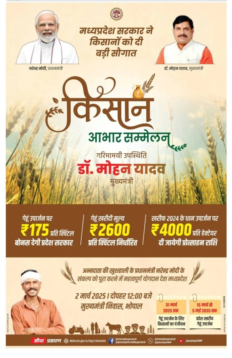 मुख्यमंत्री डॉ. यादव की अगुवाई में शनिवार को होगा किसान सम्मेलन